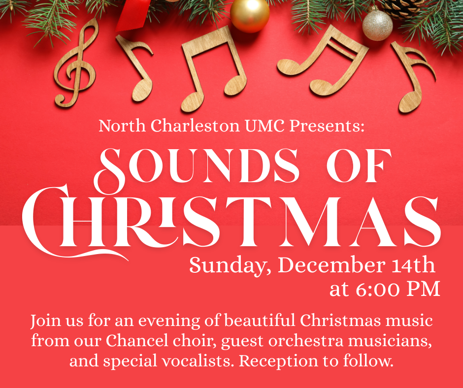 The North Charleston UMC chancel choir will be presenting a masterful concert of Christmas music. With special guest orchestral musicians and vocalists, this annual concert is not to be missed. Reception to follow.